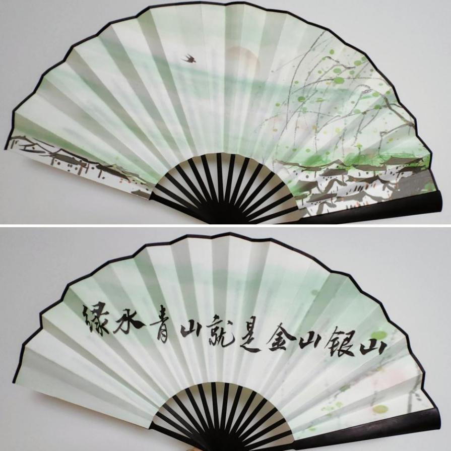 观察团创新宣讲方式,为工作人员及游客送上了亲自设计的特色扇子。扇面上,既有石崮寨郁郁葱葱的森林景观,也有村舍民俗错落有致的生动场景,更有“绿水青山就是金山银山”的醒目标语,寓意深远,引人深思。