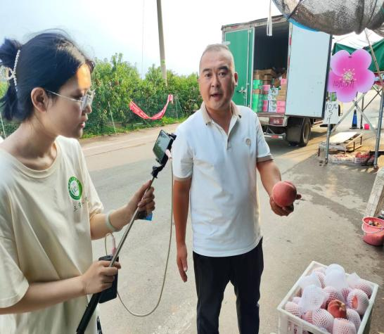 7月,正值刘台村村民农忙时节。团队成员前期跟刘台村村书记进行了沟通,了解到桃农对新媒体直播营销很感兴趣,但是受制于不熟悉手机直播技术,只能通过传统销售方式卖桃,销售路径单一。实践团利用专业所长,积极投身当地特色农产品的推广与销售之中。通过设立公益直播平台,成员们以满腔的热情,为肥城的黄金油蟠与玉妃肥桃打开了更广阔的市场大门。为了更好的宣传防走失主题,帮助失踪儿童早日回家,团队指导老师邢文龙跟宝贝回家志愿者协会积极沟通,获得了39位失踪儿童的信息并打印成了寻亲海报。另外,团队购买了50卷寻亲胶带,在直播过程中,成员们还向果农免费发放了印有走失儿童信息的寻亲胶带,展示了寻亲海报,并呼吁社会各界共同参与寻亲行动。这一创新举措不仅赢得了消费者的广泛好评与信赖,更为失踪儿童的回归之路点亮了一盏希望之灯。