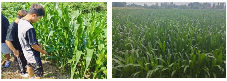 中午时分,服务团的队员们抵达赵庄村,受到了赵庄村刘书记的热情接待。刘书记介绍道,近年来在国家政策的支持下,赵庄村的村民已全部搬入新楼房,生活条件显著改善。随即,刘书记带领服务团深入玉米地进行实地考察。队员们走入一片丰产的玉米地,平原县得天独厚的地理条件为玉米的生长提供了良好的环境,村民们充分利用这一优势,发展了特色产业,致力于建设高标准农田,推动高质量农业发展。