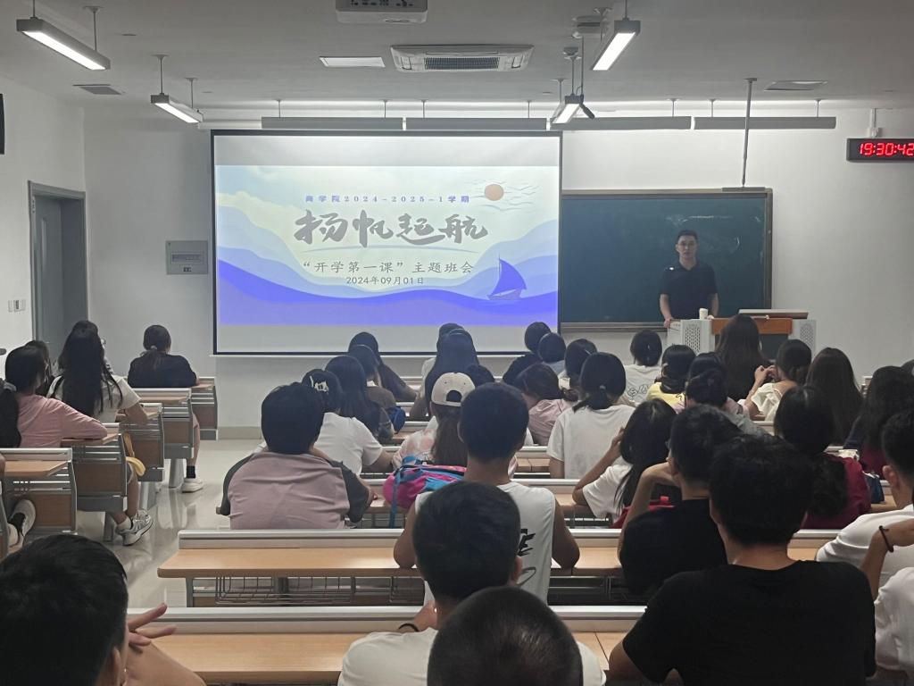 新学期伊始,为激发学生对专业学习和职业发展的热情,明确学习目标和职业规划,商学院于8月31日至9月2日由各辅导员主持召开了“开学第一课”主题班会,并组织学生观看了全国会计行业产教融合共同体主办的2024年全国会计类专业《开学第一课》。这一举措旨在引导商学院学子以饱满的精神状态和昂扬的奋进姿态开启新学期的新征程。