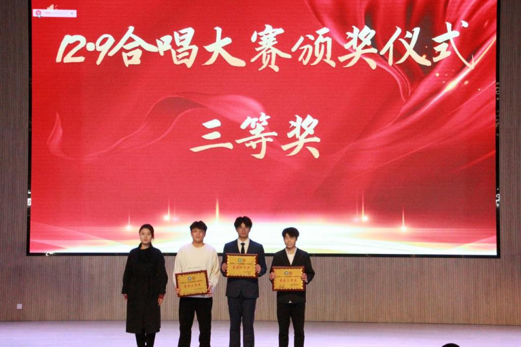 表彰会后,大家通过一段视频了解到了“一二•九运动”的历史和重要意义,党史中热血青年的峥嵘岁月重现眼前。随着视频终了,灯光转亮,合唱比赛在这澎湃的爱国激情中盛大启幕。