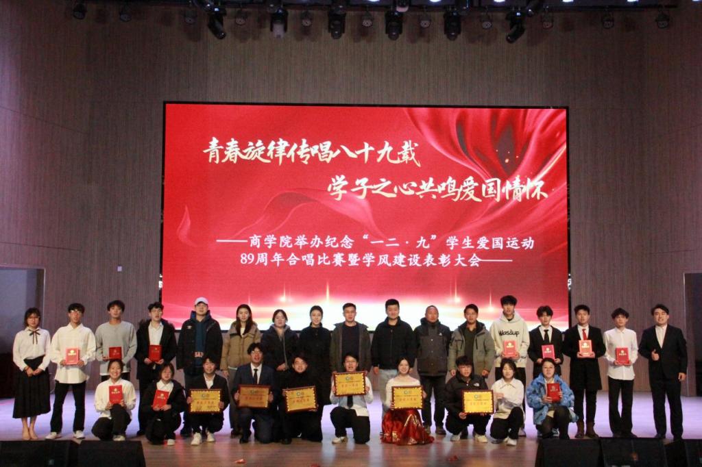 通过举办商学院纪念“一二•九”学生爱国运动89周年合唱比赛暨学风建设表彰大会活动,有力传承和弘扬了“一二•九运动”精神,激励了商学院广大青年学习先辈的革命精神,有效推动了商学院对大学生全生命周期育人规划和实践的进一步发展,增强了班级凝聚力和向心力。商学院广大青年学子纷纷表示,他们将努力在以中国式现代化全面推进中华民族伟大复兴历史进程中争先锋、做表率、当栋梁!未来,商学院将进一步加强学生的爱国主义教育,创新美育教育形式,全面贯彻党的教育方针,落实立德树人根本任务,培养德智体美劳全面发展的社会主义建设者和接班人。