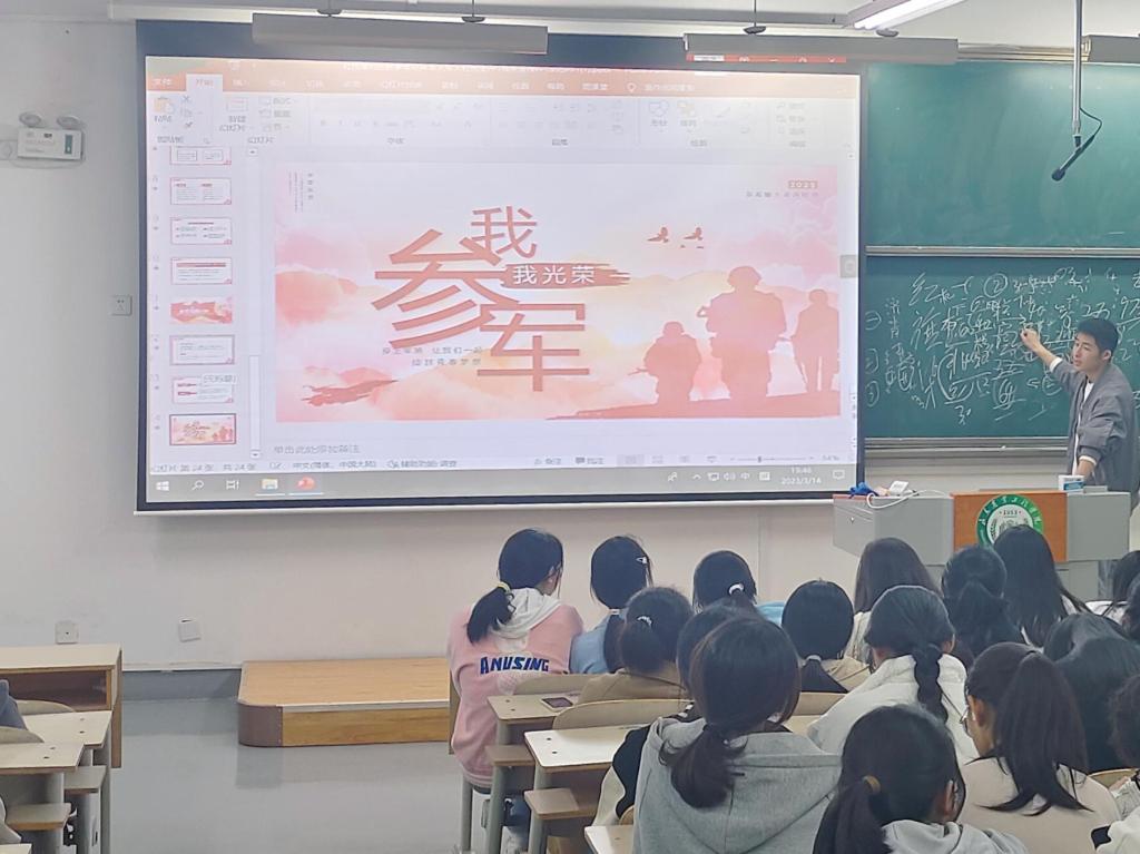 为鼓励在校大学生积极报名应征入伍,提高学生的国防意识,商学院于3月14日在齐河校区6-1教室举办了一场大学生参军入伍讲座。