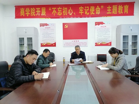 11月14日下午,商学院教工第二党支部书记朱延琳在党员活动室结合“不忘初心、牢记使命”主题教育专题活动,为支部党员讲授了题目为“不忘初心、牢记使命,潜心教书、用心育人”的党课。