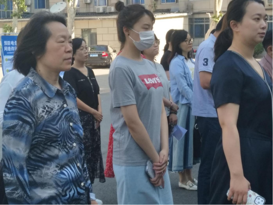 有课的学生由任课教师带领在课前誓师;其他坐班的教职工参加了学校誓师大会。
