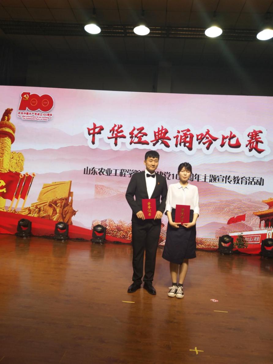 4月22日下午,由学校工会组织举办的“中华经典诵吟比赛”在济南校区大礼堂举行。商学院王浸皓老师以诗朗诵《祖国啊我亲爱的祖国》节目荣获佳奖。
