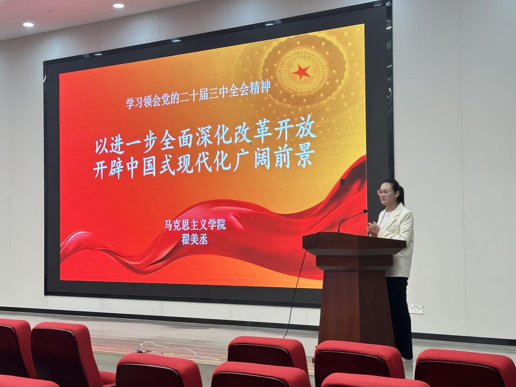 翟美丞宣讲中强调了党的二十届三中全会的主题和重大意义。她指出,党的二十届三中全会是在以中国式现代化全面推进强国建设、民族复兴伟业的关键时期,面对纷繁复杂的国际环境和艰巨繁重国内改革发展稳定任务背景下召开的一次十分重要的会议。随后,她深刻解析了全会的主题以及六个必然要求,强调了新时代下深化改革的重要性和紧迫性。