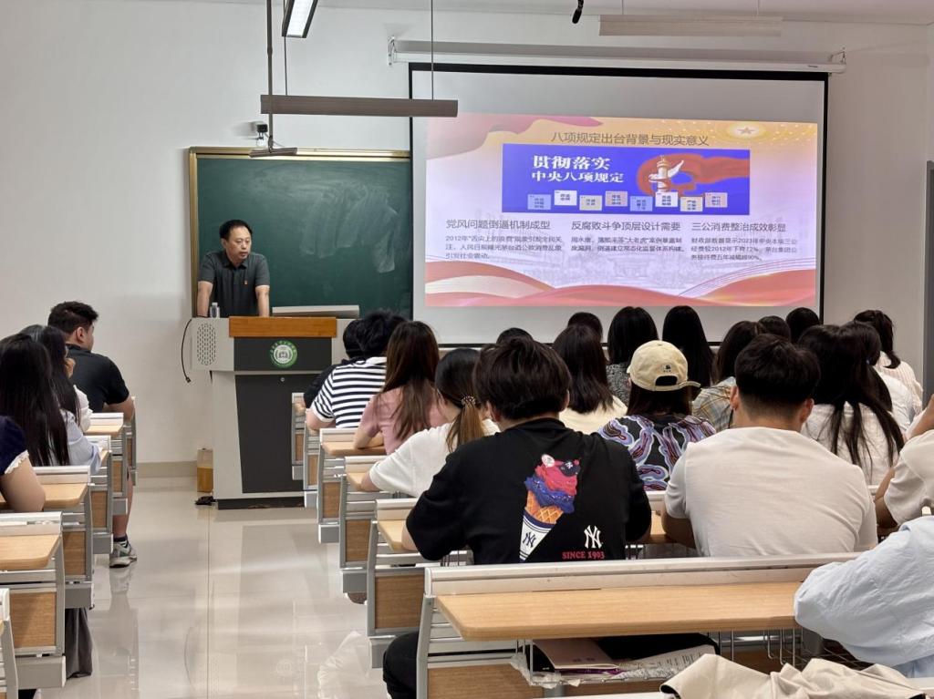为深入贯彻中央八项规定精神学习教育,教育引导毕业生党员强化政治意识、责任意识和廉洁意识,在未来的学习和工作中努力发挥党员先锋模范作用。6月23日上午,商学院组织开展2025届毕业生党员主题党课。学院党总支书记李欣担任主讲人,全体毕业生党员参加。