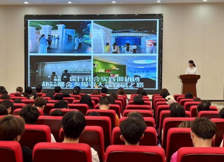 随后,2024年暑期社会实践省级优秀团队学生代表臧嘉琪同学进行发言,分享了以往实践中的收获与感悟,鼓励同学们珍惜实践机会,将理论知识与实际相结合,在实践中成长进步。