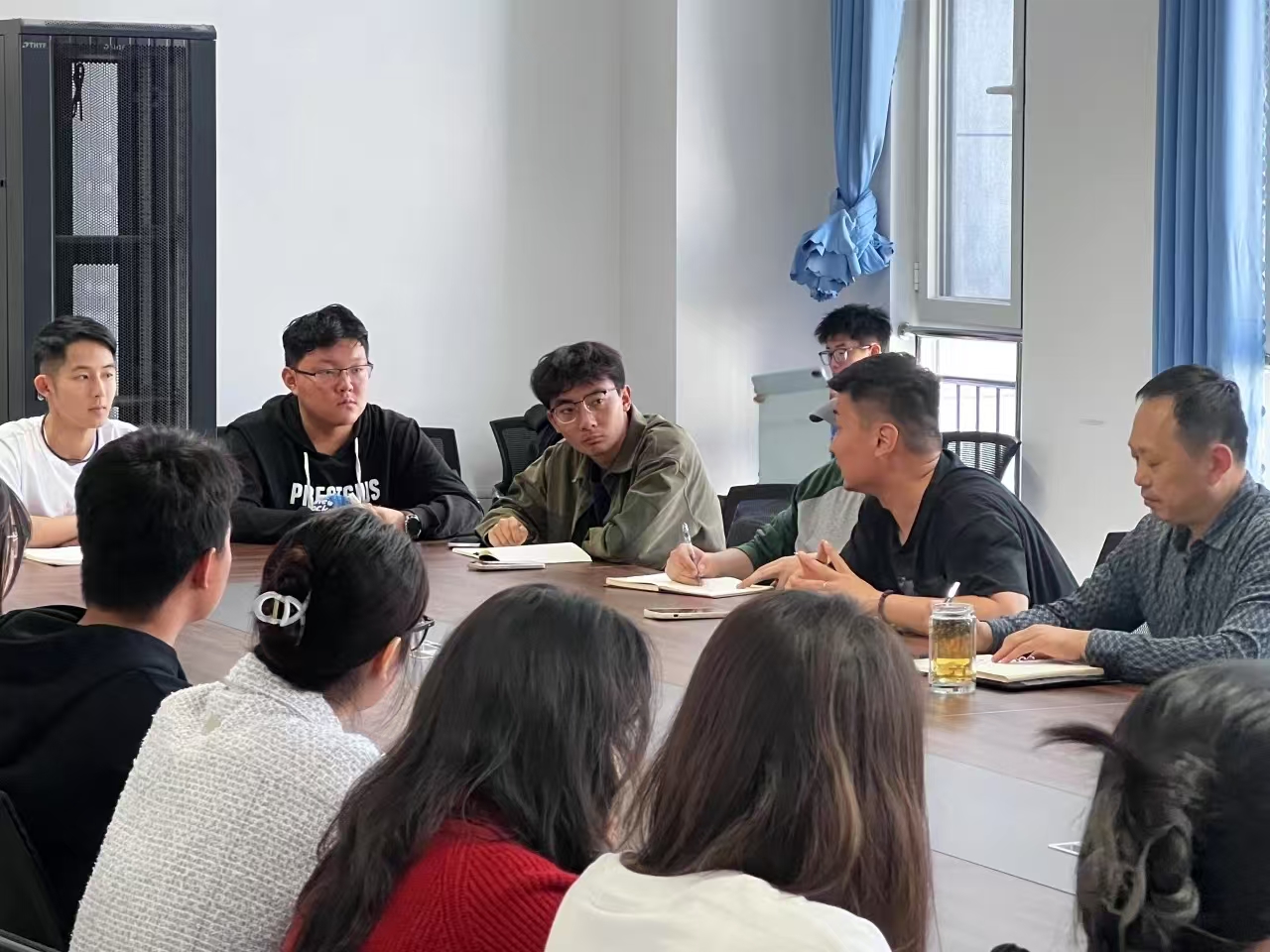 会议伊始,入会的学生代表们依次交流了开学以来在生活中和学习中遇到的一些问题。同学们热情高涨,畅所欲言,围绕校园生活,课程安排,文体活动开展,基础设施等方面提出问题。老师们认真听取学生们的发言,就有关问题与学生代表做了充分、深入的交流,给出了积极的回应及解答,对同学们提出的意见和建议进行了详细记录。