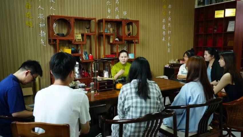 在活动期间,团队成员罗秉堃向吴苹老师请教了非遗制香如何实现年轻化以及在传承中焕发新的活力。吴苹表示:“当非遗走近年轻人,传统就有了延续的希望;当年轻人走近非遗,成长将获文化的滋养。”盛源香业通过“非遗+旅游”“非遗+校园”“非遗+创意”和“非遗IP+品牌联合”等多元化形式,探索出了一条非遗制香年轻化、时尚化、市场化的转型之路。吴苹强调,非遗的传承不仅需要外部支持,更离不开自我创新。只有不断挖掘非遗的新内涵,找到与时代发展相契合的内容,才能让非遗文化焕发出时代的活力。