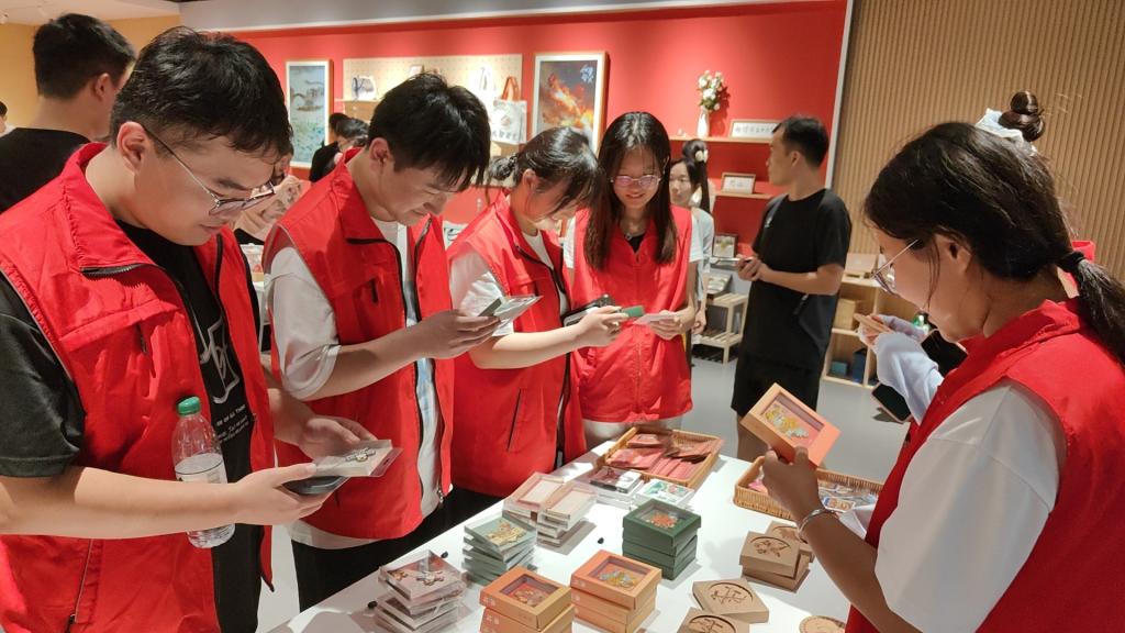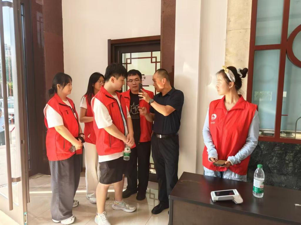 除了参观学习,云上纸鸢文化传承社会实践小队还积极投身于博物馆的志愿服务工作。队员刘雅宁、崔志远和高鹏协助工作人员引导游客参观,维护场馆秩序;李璇和陈凤霞则承担入馆扫码、行李保管、解答游客疑问等任务。他们用实际行动为传承和弘扬风筝文化贡献了力量。同时,队员们还利用自己的知识和技能,向更多游客普及了风筝文化的相关知识和价值观念。