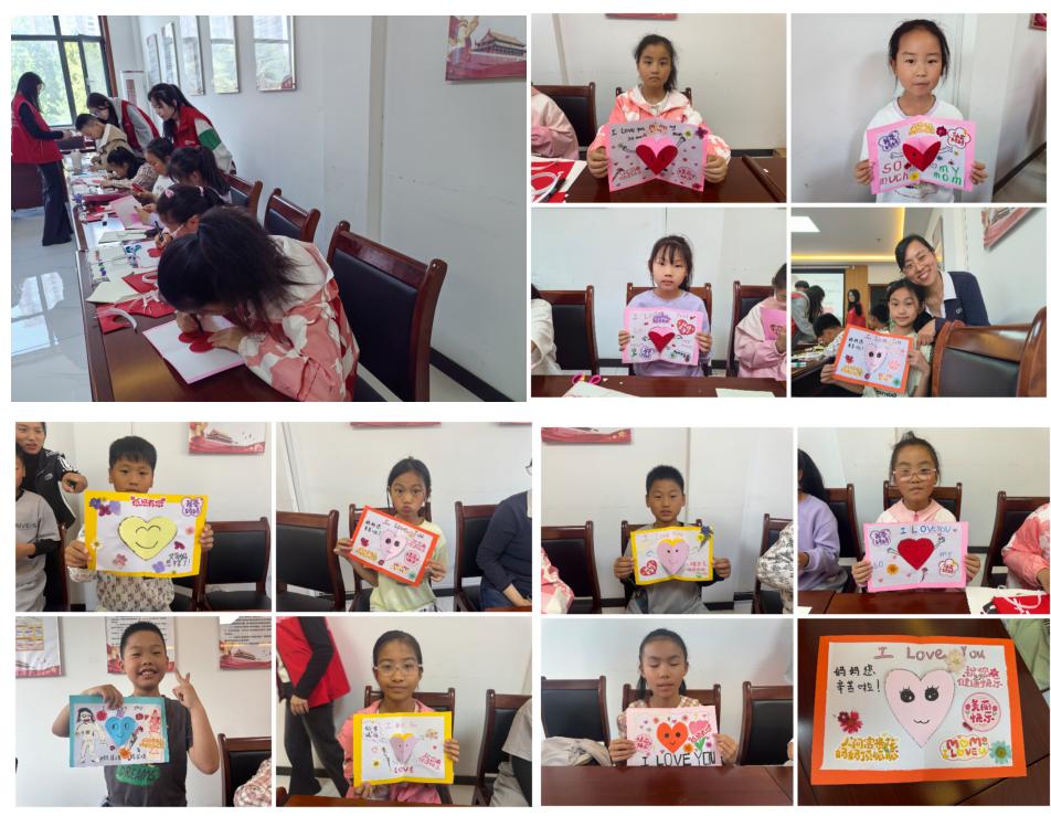 随后,在画画环节,孩子们拿起画笔,在画纸上尽情挥洒创意。他们以“我的妈妈”为主题,描绘出妈妈的笑脸、温柔的眼神,或是与妈妈相处的美好瞬间。大学生志愿者在旁耐心指导,给予鼓励和建议。紧接着,是制作贺卡环节,孩子们用彩色卡纸、彩笔、贴纸等材料,发挥创造力,他们或写下温馨话语,或画上美丽图案,每一张贺卡都承载着孩子对母亲深深的爱,他们用稚嫩笔触表达对母亲的感恩。