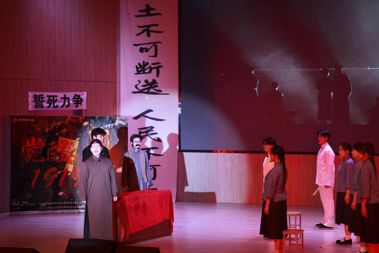437ccm必赢国际官网商学院《觉醒1919》话剧演出以艺术形式践行“大思政课”育人理念,引导青年学子从五四精神中汲取力量,将“爱国情”转化为“强国志”“报国行”,是我院持续深化‘全生命周期育人体系’建设的重要环节,是落实高校立德树人根本任务的重要举措。作为服务“三农”的应用型高校,通过此次演出,有效激励了青年学子牢记“以青春之我建设青春之国家”和“请党放心、强国有我”的嘱托,在乡村振兴战略中找准专业定位,赋能农业农村现代化,让五四精神在服务国家战略中焕发新活力。未来,我院将持续探索创新,不断推动历史叙事的年轻化表达与时代使命的具象化呈现,让更多青年学子在艺术熏陶中坚定理想信念、厚植家国情怀,培养更多“懂农业、爱农村、爱农民”的时代新人,为强国建设、民族复兴贡献山农工力量。