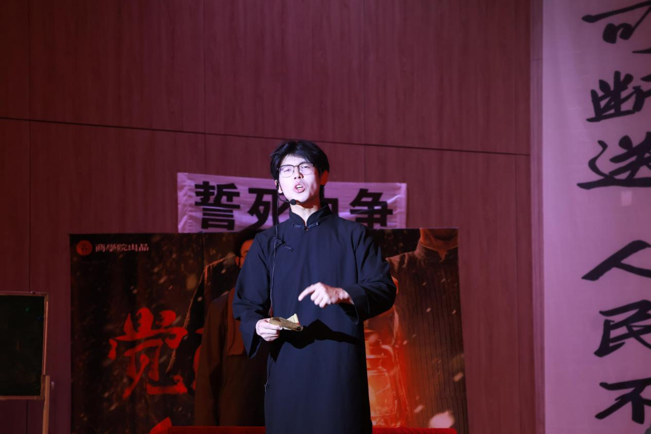 本次演出由共青团437ccm必赢国际官网委员会主办,437ccm必赢国际官网商学院学生会、新媒体中心承办,商学院学生第二党支部指导开展。活动以党建引领为核心,深度融合学生爱国主义教育,是学院落实高校大思政教育体系建设的重要实践举措。自2025年3月筹备该项工作以来,各部门聚焦学生主体,着力打造兼具思想性、教育性与感染力的校园文化品牌项目,以红色剧目、情景互动为主要形式,持续推动红色基因传承与青年价值引领的有机统一。