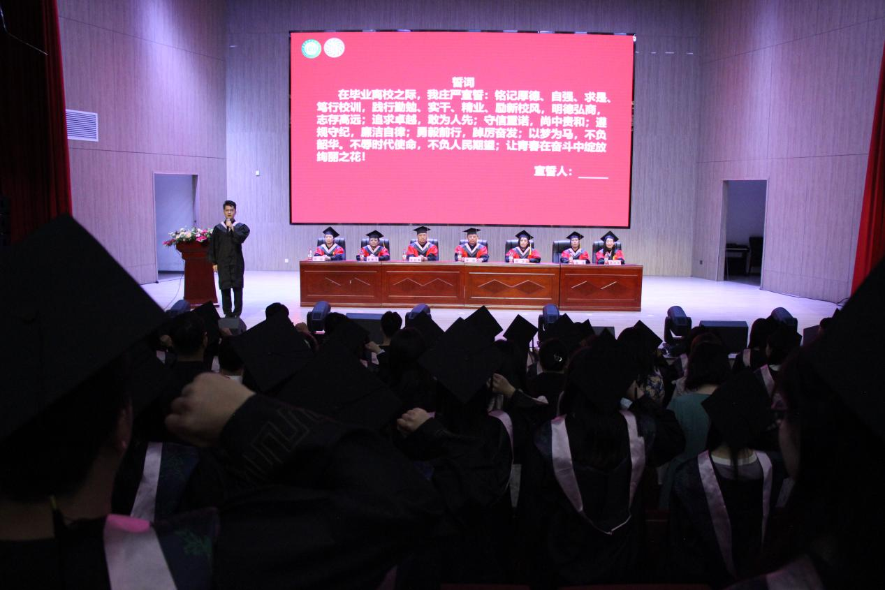 “铭记校训校风,锐意进取奋斗,不负时代使命!”在领誓人仲冠航同学的带领下,全体毕业生高举右拳,以铿锵誓言许下青春承诺。