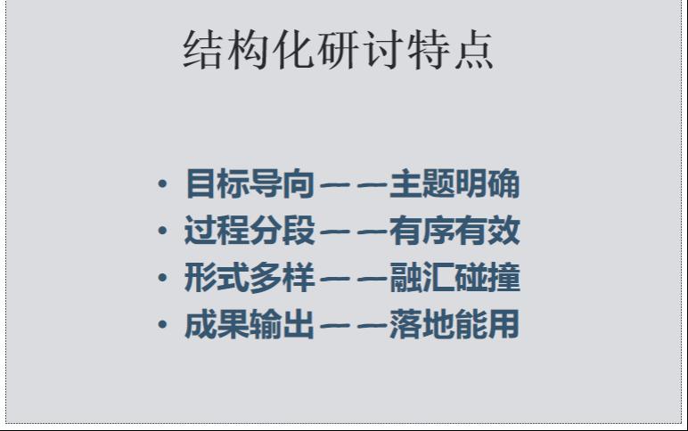 梁沛沛老师分享了7天培训的整体内容及结构化研讨。梁老师首先从人才培养模式的转变,再到教学模式、教学方法提升、以及如何申报教改项目、如何向高品质期刊投稿进行了全面梳理。其次梁老师重点汇报了结构化研讨过程。首先确定了主题:在教学过程中遇到的困惑。每组成员讨论分为三个阶段,第一阶段是讨论现状,第二阶段是讨论遇到的问题,第三阶段是讨论解决方法。每一阶段大家都是先思考3分钟,每人发言2分钟。小组讨论完毕,再交叉换组交换思路,最终画出思维导图,由汇报员汇报成果。这种方式非常新颖、目标明确、畅所欲言、得出了丰富的讨论成果。