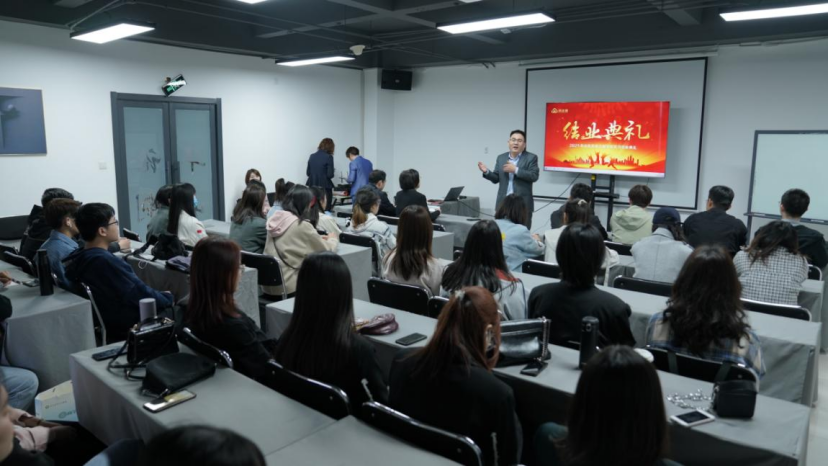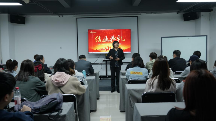 结业典礼上,百企慧董事长单宝强和我院院长王苹香分别致辞。