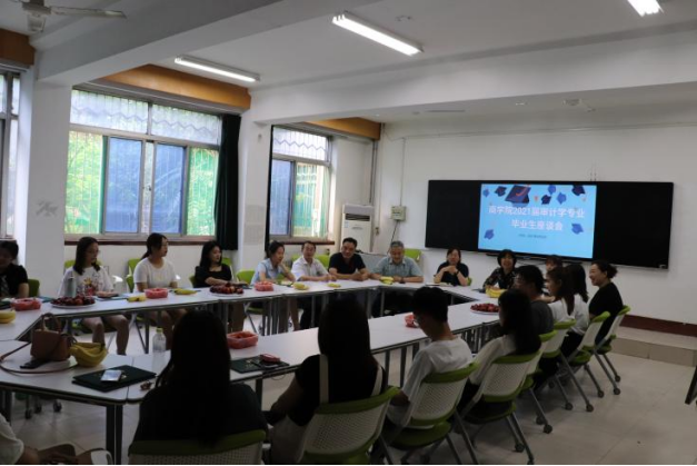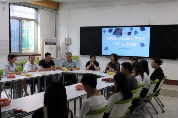 6月24日下午,商学院2021届毕业生座谈会在济南校区1号教学楼102教室举行。院长王苹香、党总支书记刘相礼、副院长张芳丽、审计学教研室主任陈杨、审计学专业负责人朱延琳、教学秘书、实验室管理、学生管理人员及20名毕业生代表参加会议,会议由院长王苹香主持。