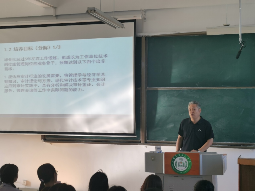 审计学专业负责人结合审计学专业人才培养方案,分别从专业办学定位、人才培养目标、人才培养模式、课程设置、学习方法及就业方向等方面进行了详细介绍,同学们认真听讲,积极互动,反响热烈。同时,就同学们关注的专业相关问题进行了解答。