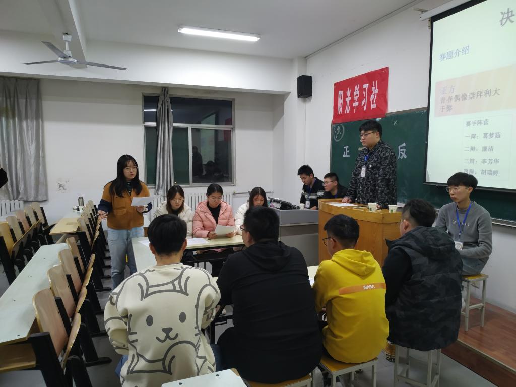 2020年11月24日18:30商学院第二届阳光学习社辩论赛决赛正式开始,经过初赛的选拔,进入到决赛的队伍个个实力强劲,每一组的辩论都给人留下来深刻的印象,辩手们唇枪舌剑,势均力敌,现场掌声不断。