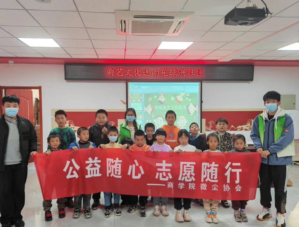 为积极响应团中央下发的大学生社区实践计划2023年工作指引以及团省委下发的《关于开展“百万大学生进社区”社会实践的工作方案》的工作要求,12月2月,商学院微尘协会走进了南苑绿洲社区,开展了题为“曲艺走进社区,快板浸润童心”的社区实践活动,带领社区青少年儿童感受中华传统文化,增强文化自信。