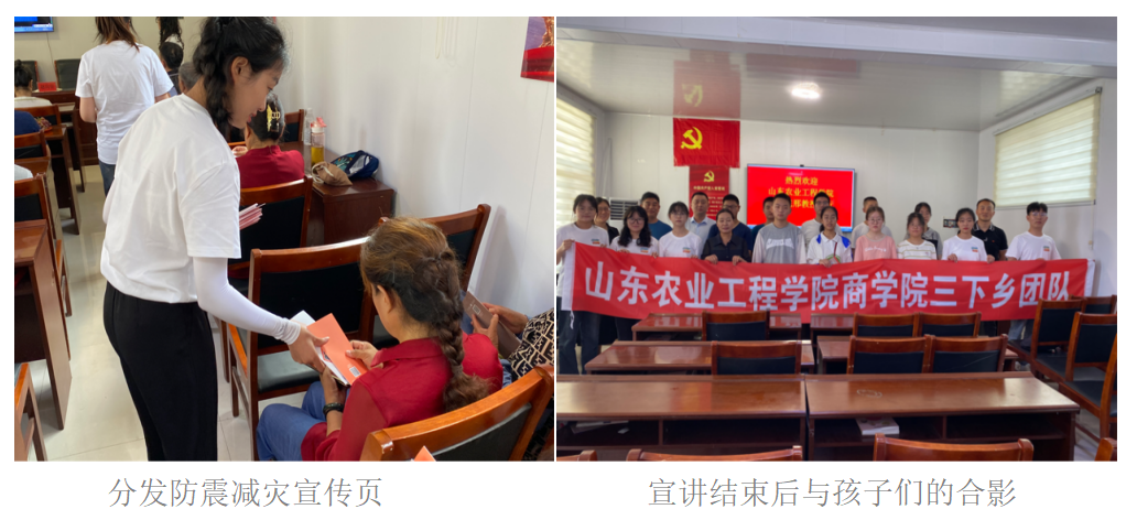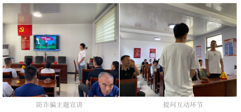 在夏家庄村幸福院,团队成员开展了防溺水、防诈骗、防震减灾主题宣讲,分别用生动有趣的方式向现场朋友们介绍了防溺水、防诈骗、防地震的重要性及如何应对,通过PPT、视频和互动问答并给予文创周边小礼物,大家在轻松愉快的氛围中学到了关于提高防溺水意识和知识、真正溺水时该如何自救;常见的诈骗手段、如何防止被诈骗等知识。随后,实践团队与相关负责人就新型农村集体经济发展路径等问题进行了座谈,并实地考察了夏家庄村高标准农田以及村工业产业园建设情况。