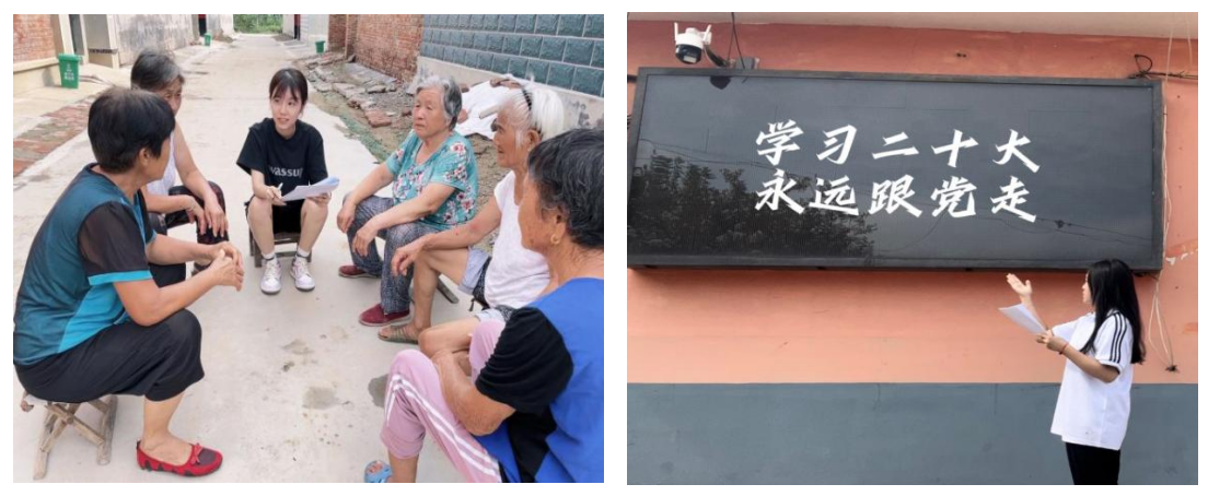 活动中,成员们深入乡村直接面向村民进行宣讲,重点讲述了习近平总书记关于爱国主义教育的重要论述,表达我们的爱国之情、强国之志、报国之行。通过一些生动的事例,阐述了党的二十大精神对于推进中国式现代化发展的重要指导意义,让理论宣讲字字有力度,句句有温度,让党的二十大精神“声”入人心,加深了村民对党的二十大精神的理解,同时也展现了党的十八大以来取得的历史性成就、发生的历史性变革,更加坚定了中国特色社会主义道路自信、理论自信、制度自信和文化自信。