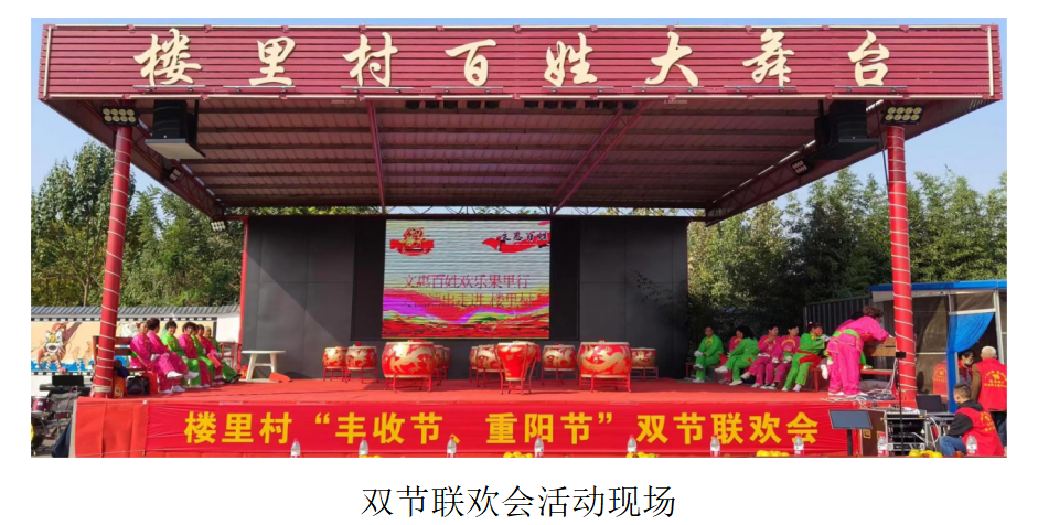 文艺汇演在楼里村锣鼓队的战鼓中拉开序幕。汇演中歌曲《万疆》、舞蹈《山河美》《饮酒欢歌》等唱出了广大人民群众对党和伟大祖国的无限热爱和美好祝愿,舞出了广大人民群众对新时代美好生活的赞美与追求,表达了楼里村广大人民群众欢天喜地庆丰收的幸福与喜悦,充分展现了新时代农村、农民的新气象。