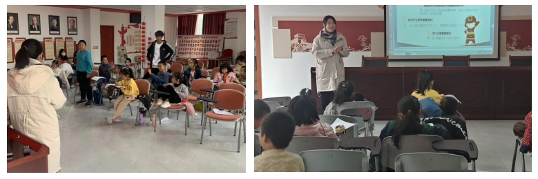 活动伊始,大学生志愿者通过与小朋友们积极互动,充分调动起小朋友们的积极性,为这堂“消防安全”课营造了欢乐的氛围。随后志愿者从火灾的概念、消防器材、消防标识、易燃物品、逃生方法、火灾注意事项这六个方面向小朋友们做了详细的讲解。为使课堂富有趣味性,志愿者采用播放“消防安全知识”动画、随机提问等方式带领小朋友融入到课堂当中,不仅提高了小朋友的学习积极性、专注力,而且让小朋友们对消防安全有了正确的认识,增强了安全意识,提高了自救本领。