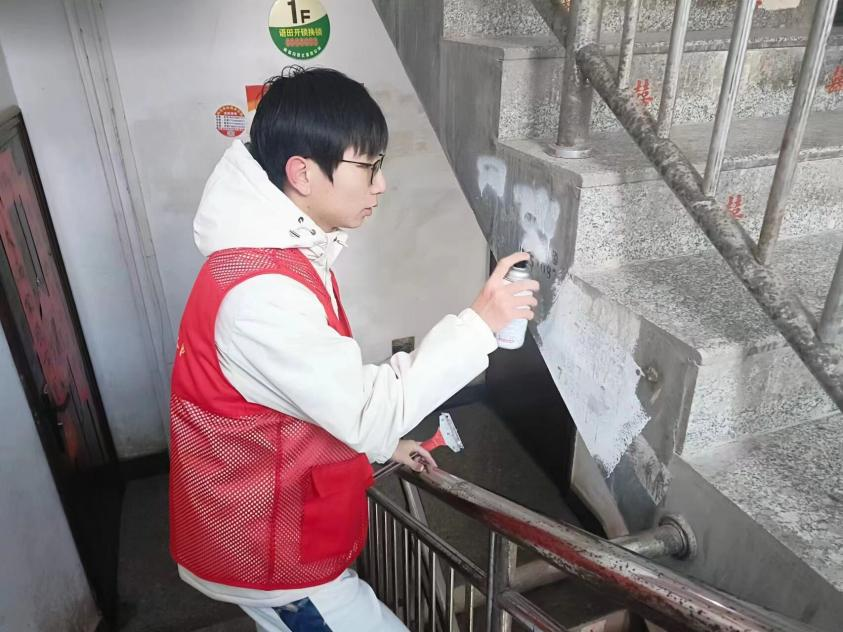 随意张贴的楼道小广告,影响市容市貌和居民的日常生活,也可能会对社区的整体风貌产生负面影响,李伟硕和志愿者们通过清理小广告,有效的改善了楼道的卫生状况,使居民生活在更加干净的环境中,同时也能够美化社区整体环境,提升社区整体面貌,释放了更多的社区公共资源。