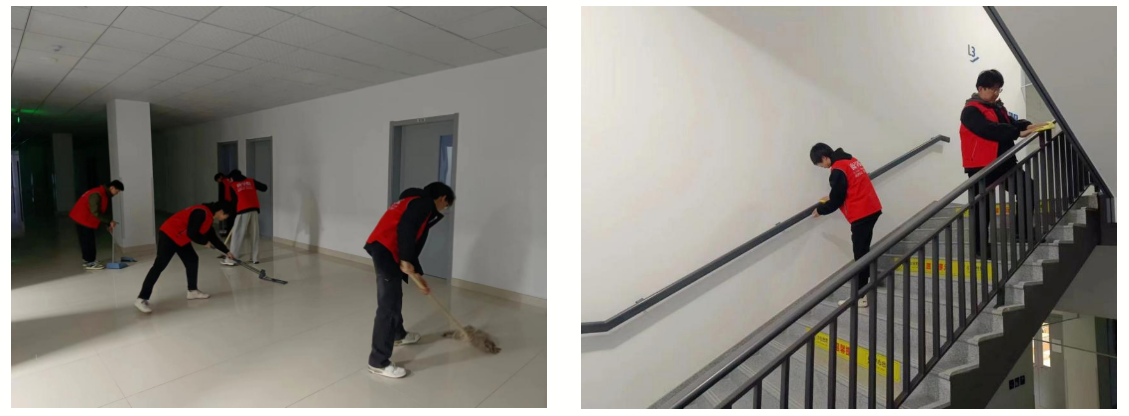 本次活动于3月11日开始,我院志愿者积极参与,为建设美丽校园贡献了自己的一份力量。同学们放下了书本和墨笔,拿起扫帚和拖把,各志愿者按照分工对教学楼等区域进行了卫生清扫工作。教学楼内,志愿者三五成群,有条不紊的进行着自己的工作;楼梯口处,他们拿起了抹布,认真擦拭着阶梯旁的扶手;窗户旁,他们同样认真擦拭着窗户与扶手,阳光映射下的身影,不仅有他们,还有指引我们的雷锋同志;楼道内,他们拿起扫帚和墩布,扫清垃圾,拖干地面,我们挥洒的不仅是汗水,更是对雷锋精神的传承。