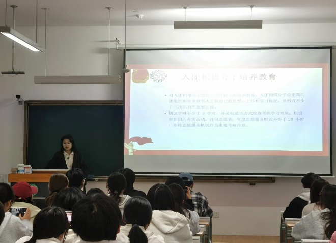 在团员发展流程的讲解中,胡玄颜详细介绍了从团前教育、入团申请、积极分子培养,到发展对象的确定、团支部大会的讨论、上级团组织的审批以及庄重的入团仪式等各个环节。这一严谨的流程确保了每位团员在组织的关爱和引导下茁壮成长。