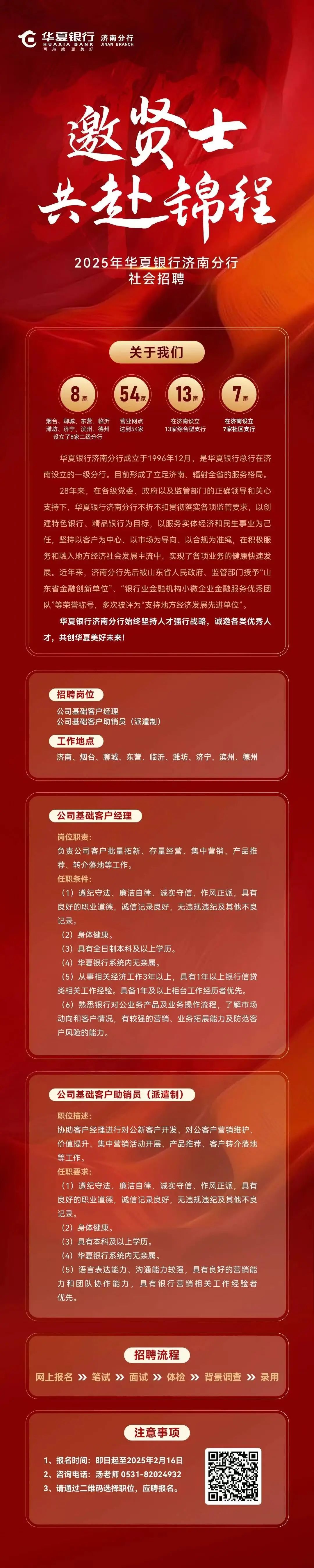 就业职通车|商学院2025届毕业生“寒假促就业暖心行动” 2025年华夏银行济南分行社会招聘