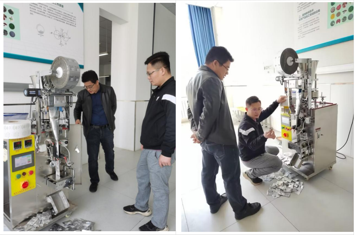 在食品加工实训中心,张亚栋耐心细致地对包装机的各项功能进行了演示,于克学并就其加工原理、功能拓展和市场需求进行了研讨。赵志桓及相关教师围绕食品包装行业的发展趋势、食品机械的研发设计、跨学科应用型创新人才培养等进行了深入交流。