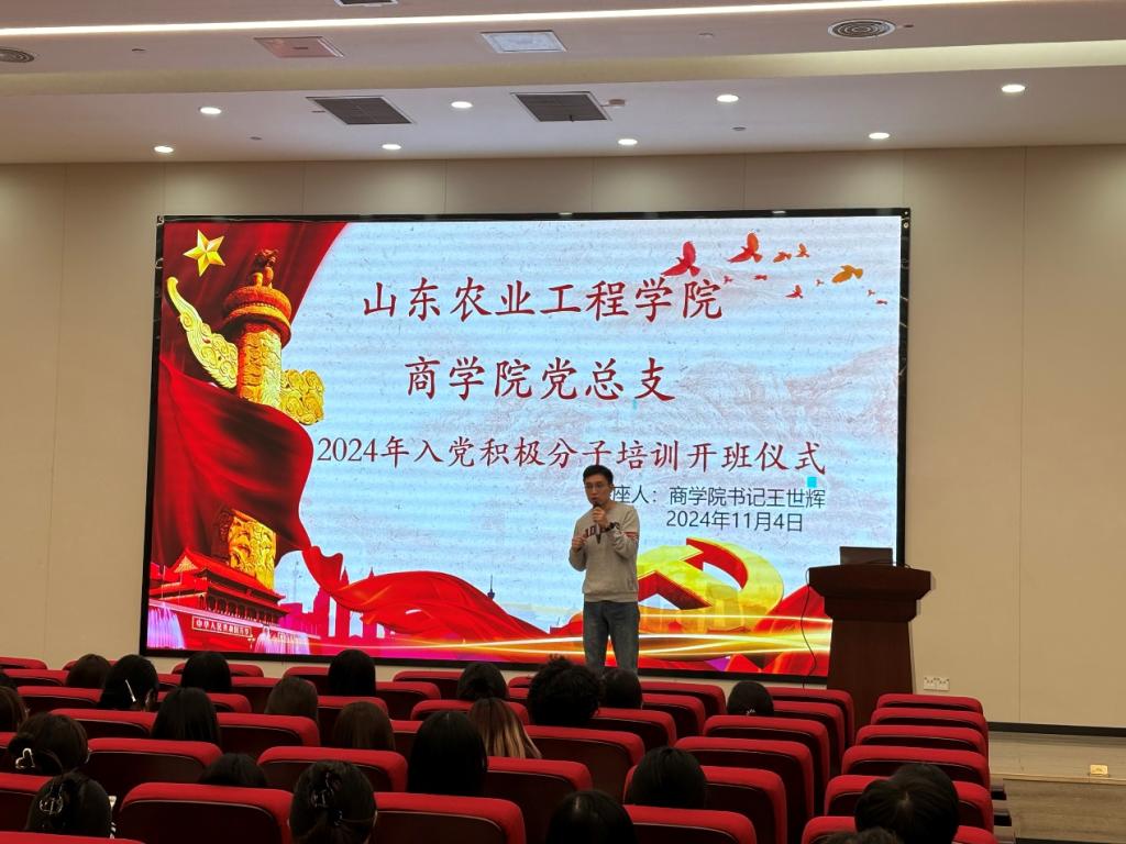 为提高商学院学生党员和入党积极分子的政治思想觉悟,不断增强支部的凝聚力、战斗力和影响力,进一步做好党建工作,商学院党总支以习近平新时代中国特色社会主义思想为指导,依据相关规章制度,于11月4日在文法西楼报告厅举行了2024下半年入党积极分子培训开班仪式。本次仪式由商学院党总支副书记王世辉主讲。