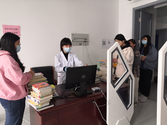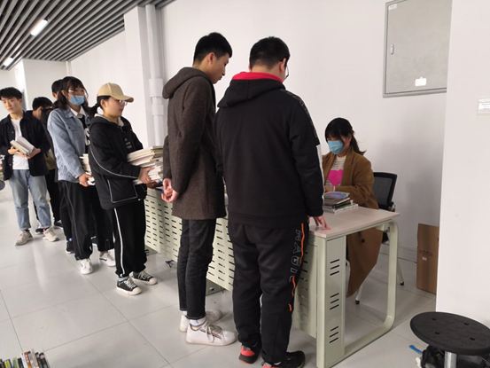 图书馆在做好读者借还图书工作的同时,高度重视疫情防控工作,要求工作人员和学生进馆配戴口罩,增强自我防护意识,养成良好卫生习惯,做好管理,加强引导,为读者提供安全、优质的服务。同学们到馆借书热情高涨,积极配合图书馆老师的工作,有秩序排队借书。同时,工作人员加班加点,将归还的大量图书,尽快完成分类整理工作。