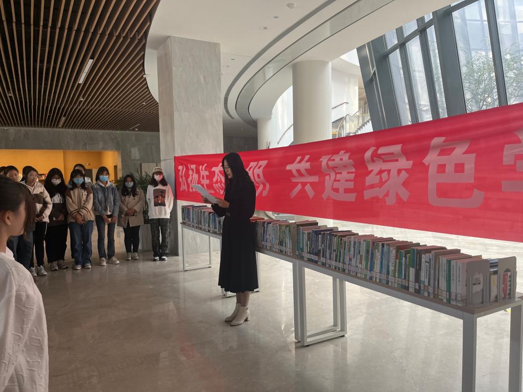 图书馆精心挑选了绿色低碳校园建设、绿色生活、绿色城市、环境与你等种类丰富的生态文明类图书。线下书展的方式,使读者能更直观感受到读书的氛围和乐趣。不少读者驻足翻阅,形成校园里一道靓丽的风景。
