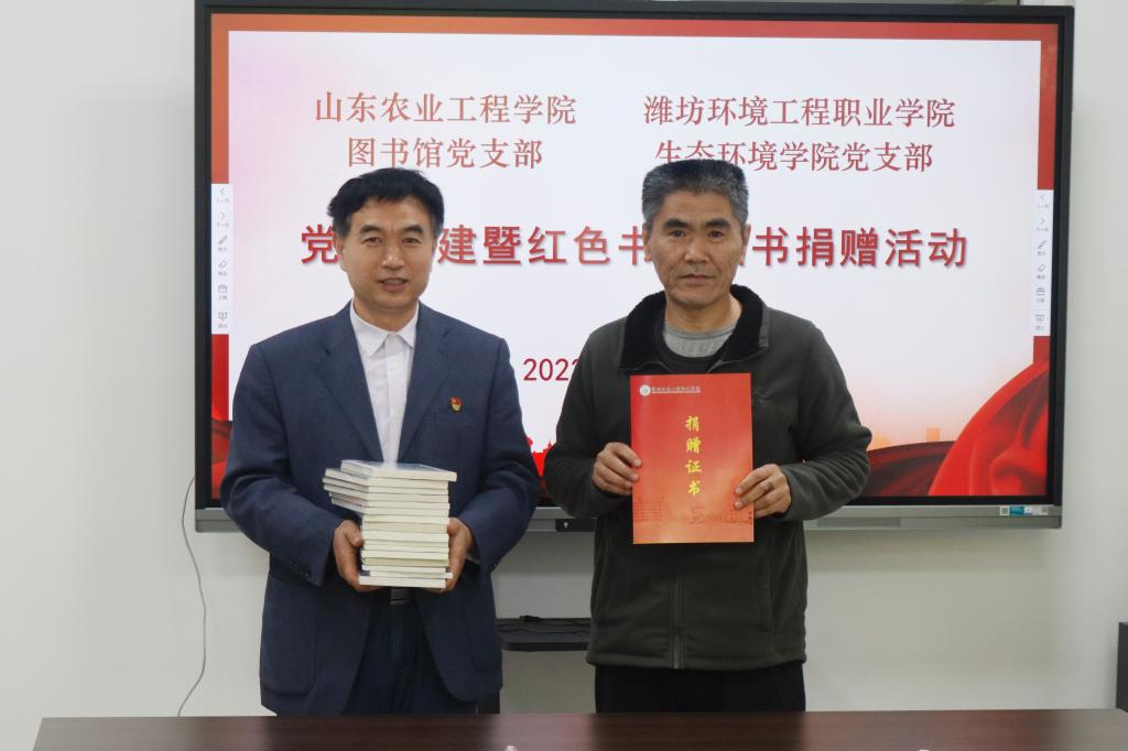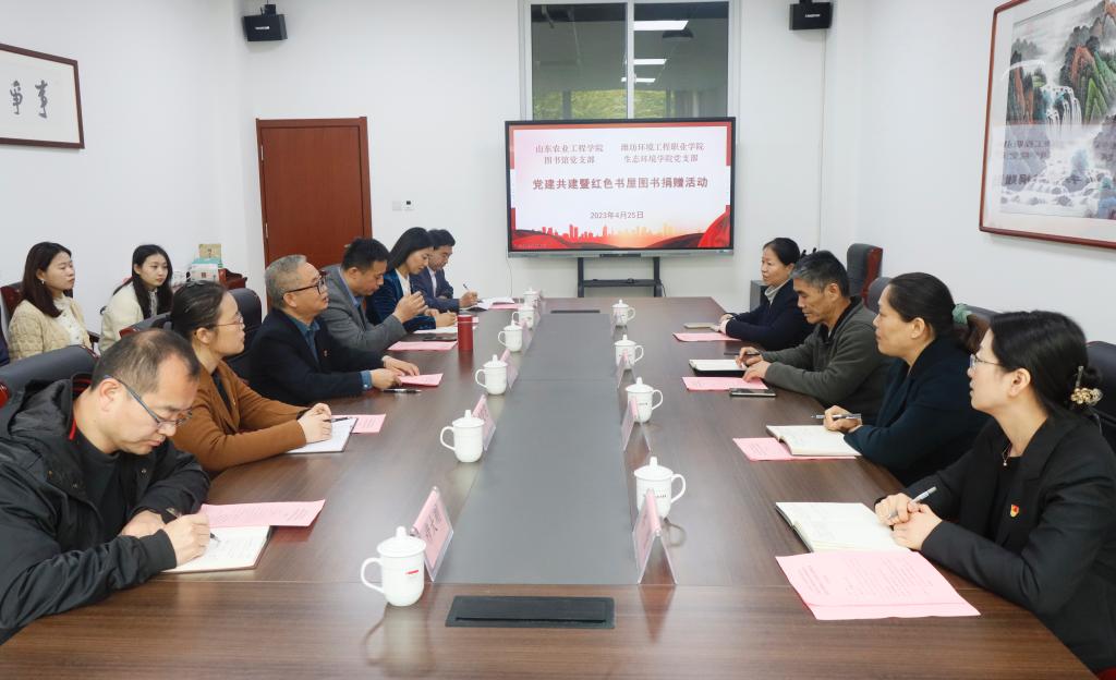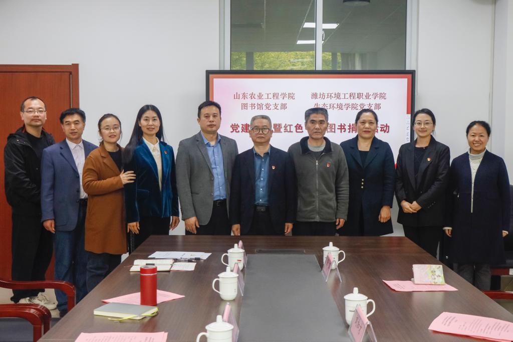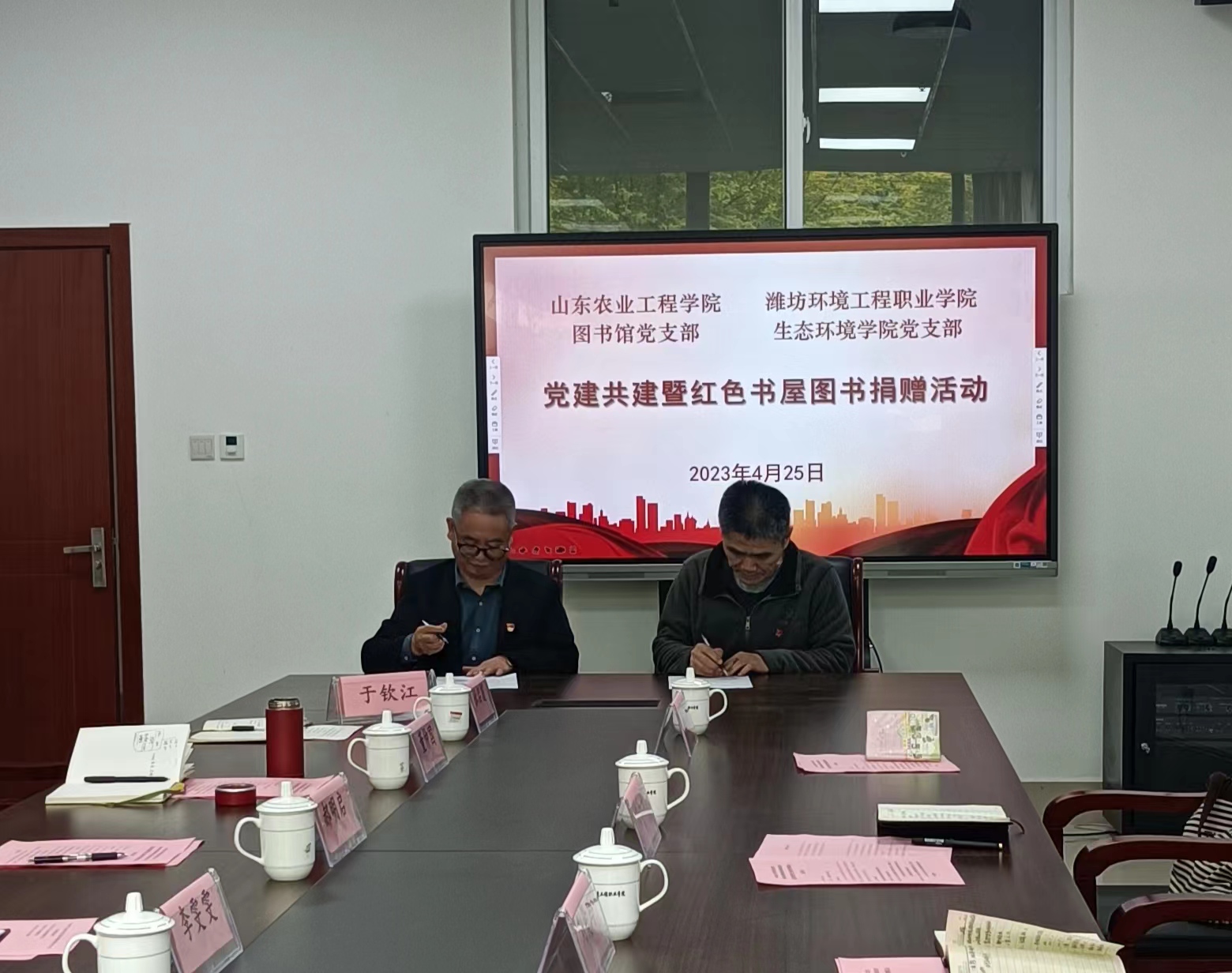 为全面开展学习贯彻习近平新时代中国特色社会主义思想主题教育,4月25日,图书馆党支部书记、馆长刘加才、副馆长刘爱玲等一行4人,前往昌邑与潍坊环境工程职业学院党委委员、副校长、生态环境学院党支部书记郝明启,省教工委派驻潍坊环境工程职业学院党建工作指导员董仲国举行党建共建签约仪式、红色图书捐赠活动。潍坊环境工程职业学院组织部副部长李雯雯主持,双方支部委员、图书馆馆长于钦江和师生代表参加了活动。