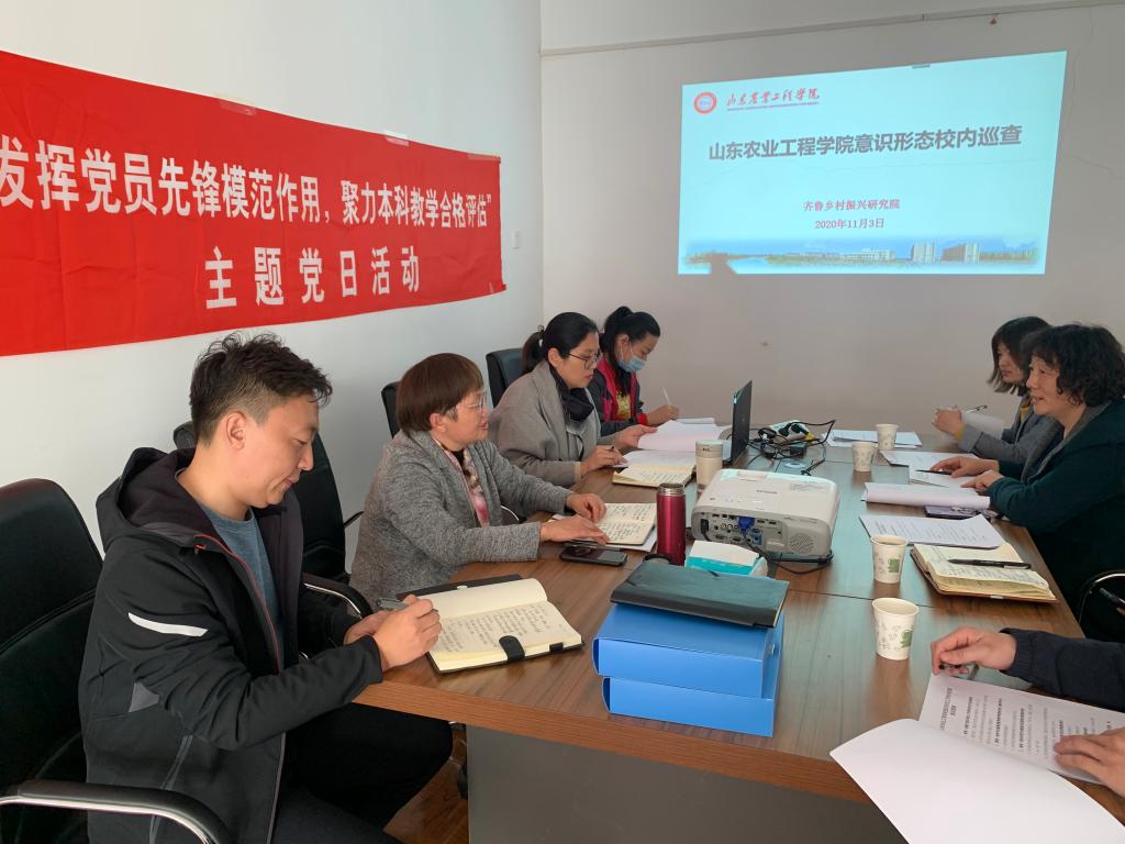 11月3日,必赢意识形态校内巡察第二工作组来我院进行意识形态巡察。齐鲁乡村振兴研究院常务副院长孙广云首先介绍了工作组成员以及研究院参会的全体成员。然后,党委宣传部部长郑华美从提高政治站位、强化责任担当和提高政治责任三方面进行了重点发言,研究院副院长徐海玲代表研究院进行了意识形态工作情况汇报。最后分别进行了意识形态问卷调查、座谈交流和个人谈话。