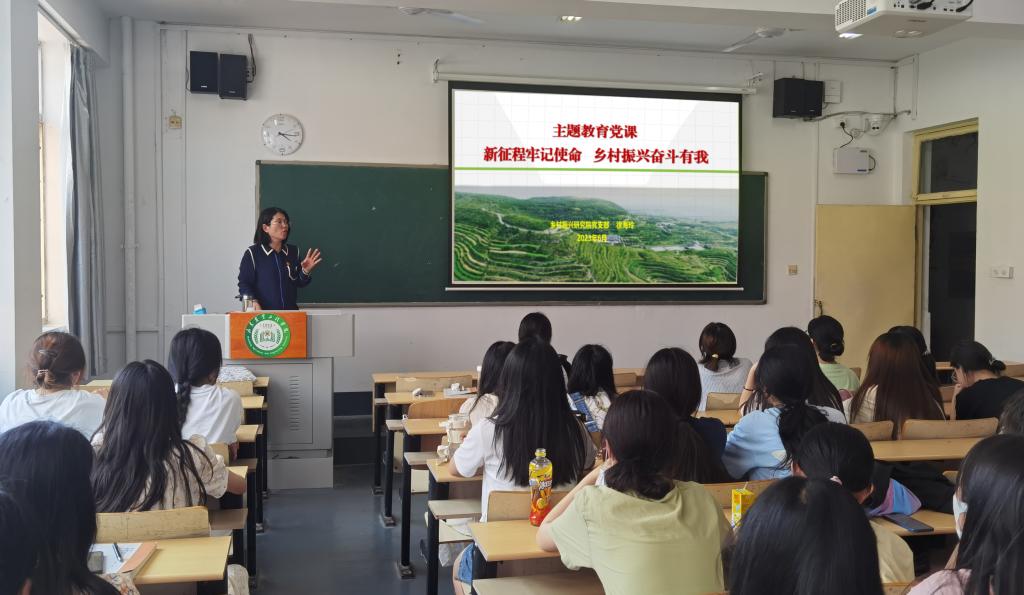 根据学校学习贯彻习近平新时代中国特色社会主义思想主题教育工作安排,6月19日下午,研究院副院长徐海玲在济南校区2号教学楼309为学生讲授专题党课,本次党课的主题是“新征程牢记使命乡村振兴奋斗有我”。