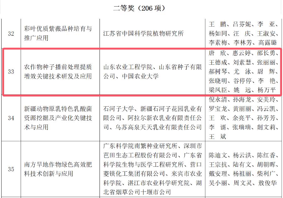 近日,近日中国商业联合会公布了2024年度“中国商业联合会科学技术奖”评选结果。由我院唐欣教授主持完成的“农作物种子播前处理提质增效关键技术研发及应用”项目荣获“2024年度中国商业联合会科学技术奖”科技进步奖二等奖。