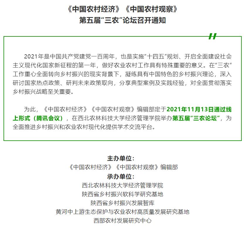 学术会议通知:《中国农村经济》《中国农村观察》第五届“三农”论坛