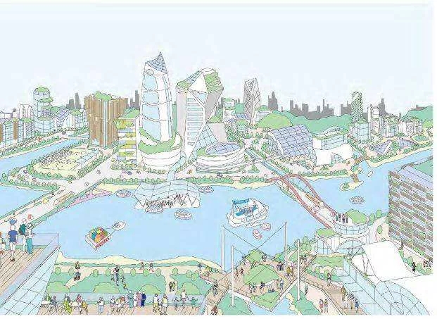 图:水景与绿化形成网络,形成融合发展的格局(《东京2040》)