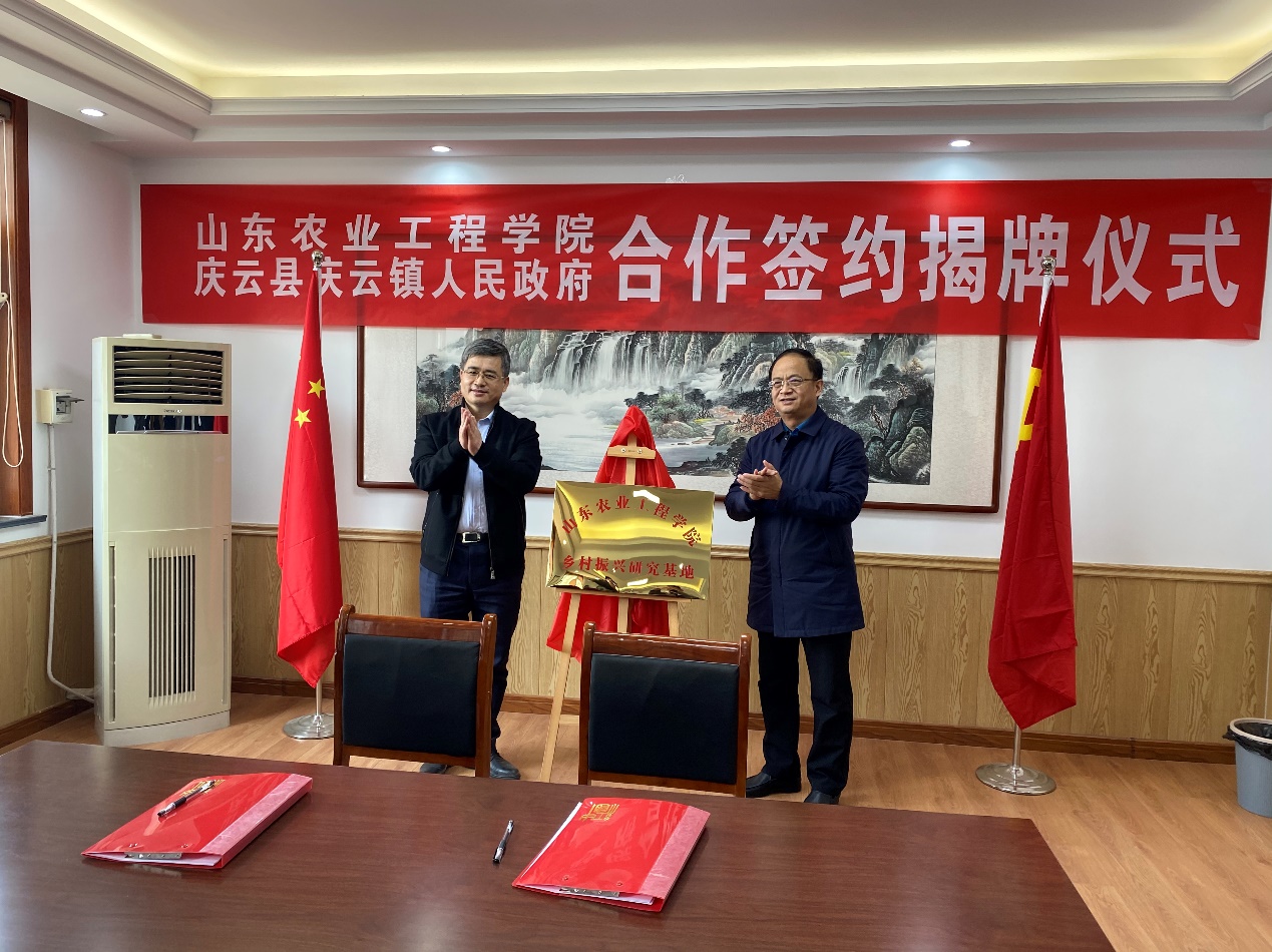 最后,张兆明与刘吉军为“437ccm必赢国际官网乡村振兴研究基地”揭牌,并与庆云镇人民政府签订了《437ccm必赢国际官网 庆云县庆云镇人民政府关于建立战略合作机制的框架协议》。
