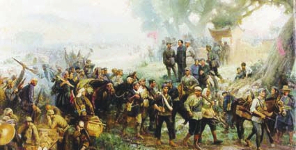 在中原大战结束后,蒋介石从10月起便马不停蹄从全国抽调兵力,调集10万大军向中央革命根据地发动第一次反革命“围剿”行动。12月,国民党军队长驱直入、分进合击进攻根据地,但因为战线过长,士气低迷。面对敌人的优势兵力,毛泽东、朱德指挥4万人的红一方面军诱敌深入,将敌军先头部队诱至根据地中部,再将敌军分割为两群,各个击破,并擒获了国民党此次围剿行动前线总指挥国民党军第18师师长张辉瓒。在1931年1月3日,红军以少胜多,取得了第一次反“围剿”的胜利,这让毛泽东大为振奋,他专门赋诗一首《渔家傲·反第一次大“围剿”》,“万木霜天红烂漫,天兵怒气冲霄汉。雾满龙冈千嶂暗,齐声唤,前头捉了张辉瓒”将红军骁勇善战、士气高昂的战斗状态一一记录。这场战役是红军建立后战果最大的一次,红军成功实现从游击战为主向运动战为主转变。战争中“大步进退,诱敌深入,集中兵力,各个击破,运动战中歼敌人”的战术成为了红军游击战术的精髓。