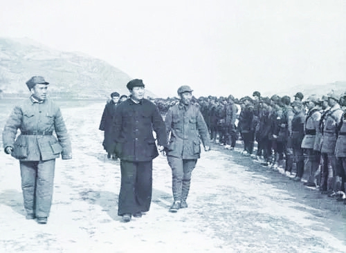 1939年12月,国民党军队向陕甘宁边区进犯,第三五九旅奉命从华北返回陕甘宁边区保卫延安,图为毛泽东和朱德检阅抵达延安的三五九旅