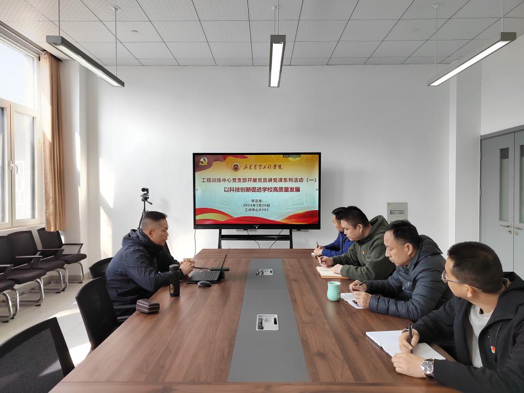 为促进学校高质量发展,增强党员科技创新意识,3月26日,工程训练中心党支部组织开展党员讲党课系列活动,支部书记宋卫海以“以科技创新促进学校高质量发展”为题,为支部全体党员讲授党课。