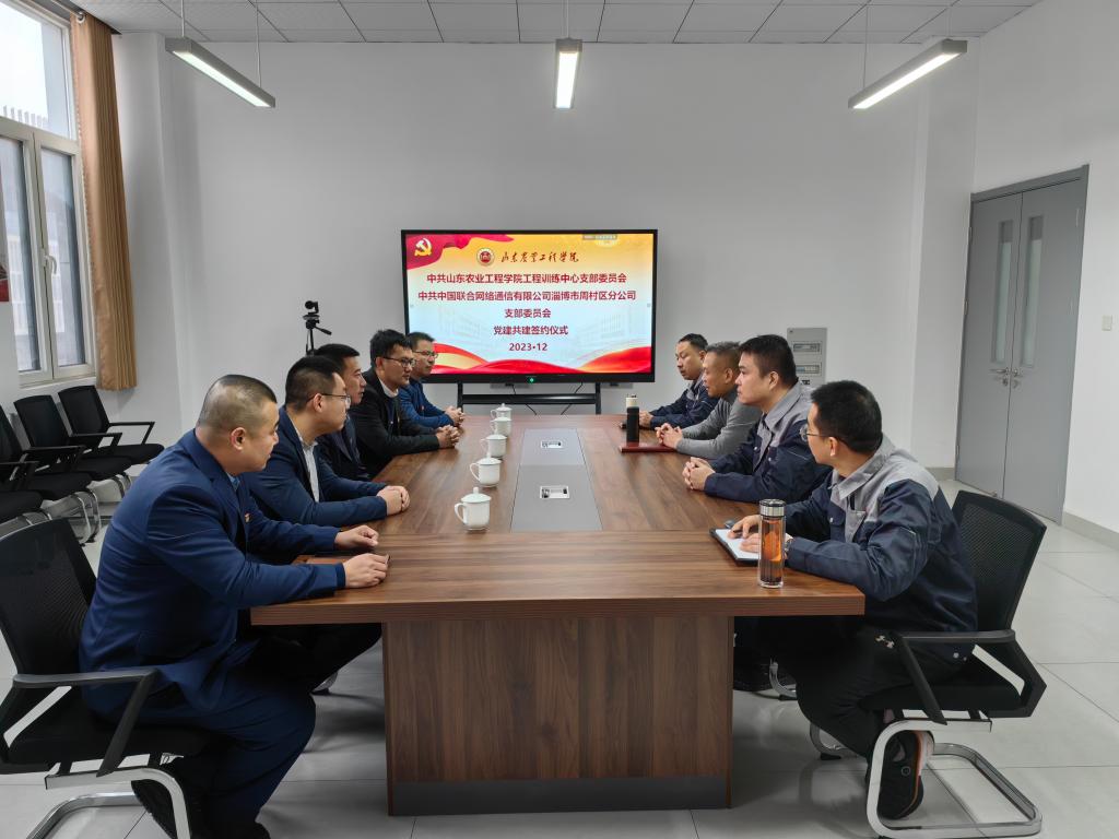 12月13日上午,在工程训练中心A303会议室,中共437ccm必赢国际官网工程训练中心支部委员会与中共中国联合网络通信有限公司淄博市周村区分公司支部委员会举行党建共建签约仪式,共同绘制党支部联建共建发展蓝图。