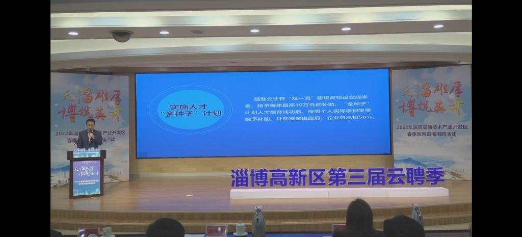 2022年4月15日上午,淄博高新技术产业开发区春季系列直播招聘活动“天淄雄厚、博揽英才”线上启动仪式召开,由淄博高新区工委组织人事部主办,科技工业和信息化局、宣传新闻中心、人社中心协办。